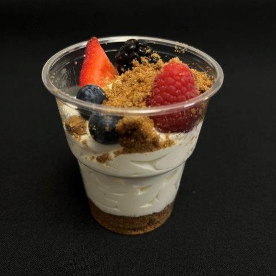 Gevuld met frisse opgeklopte yoghurt, seizoensfruit & bastogne kruimels
