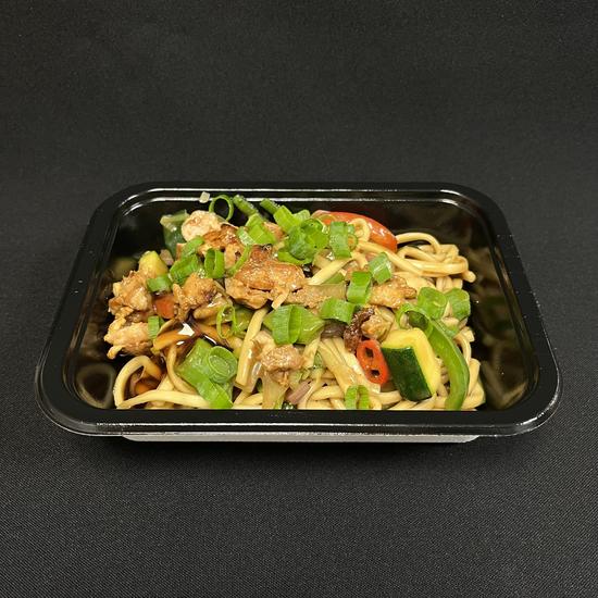 Gevuld met woknoodles, groentemix, kruiden, teriyaki saus & kippendij