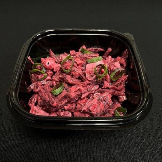 Gevuld met rode bieten, rode ui, bos ui & zilveruitjes