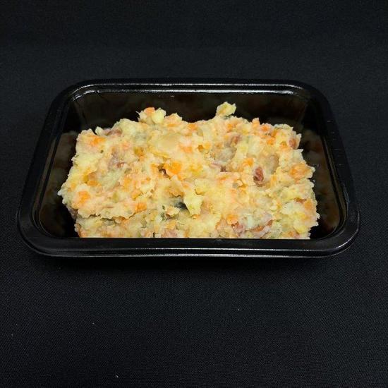 Gevuld met aardappelen, peen, ui, prei, bruine bonen & kruiden